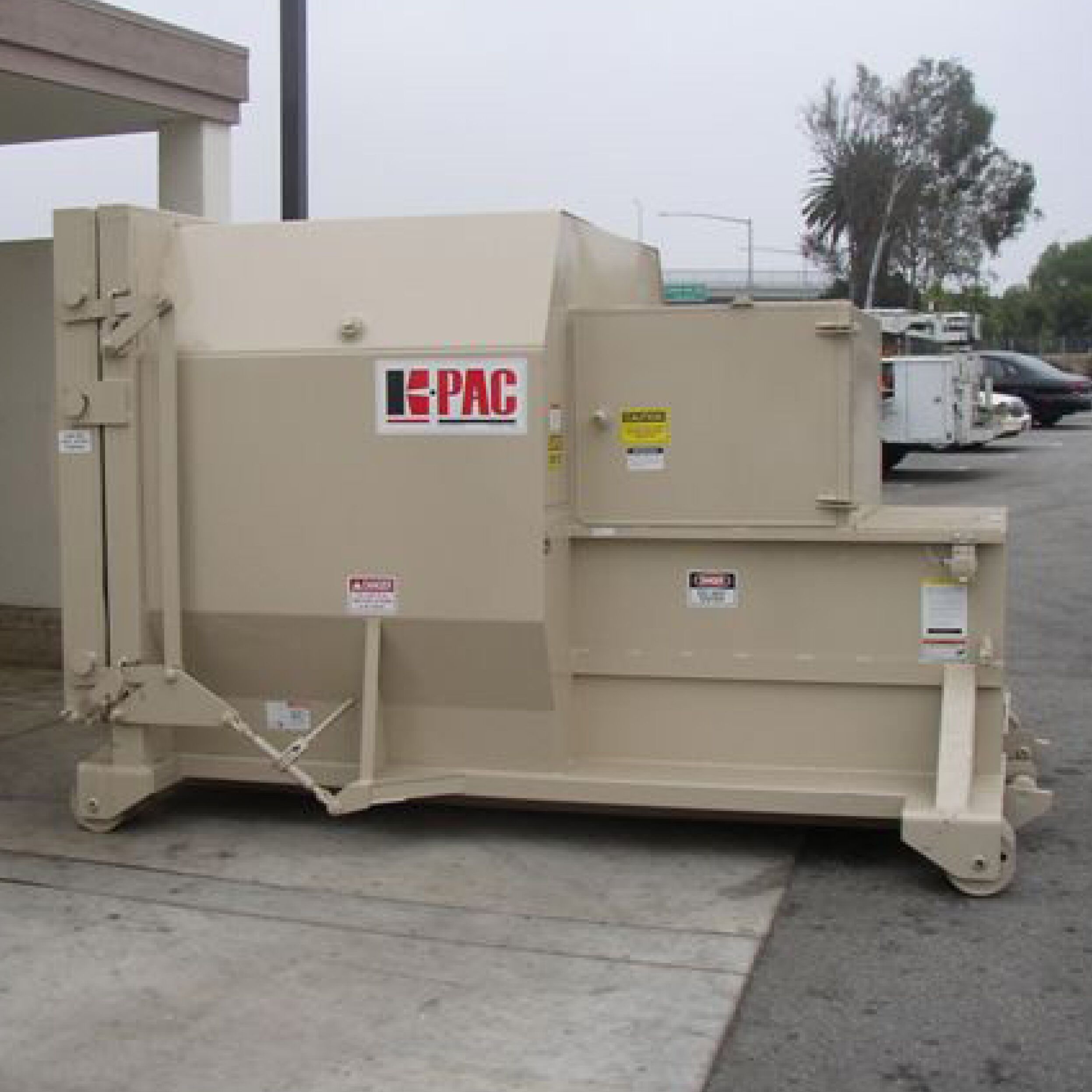 A KP1HT, Hy-Tail Self-Contained Compactor convenient loading height makes ground level loading quick and easy. One piece construction between the packer head and container, and a 44″ liquid retention height assure leakproof performance.